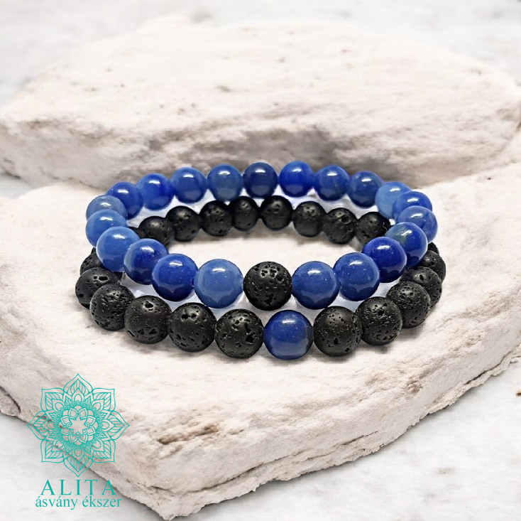 Lávakő-kék kvarc páros ásvány karkötő