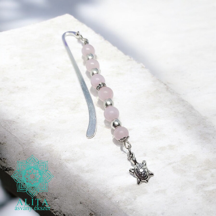 Rózsakvarc ásvány könyvjelző – A szeretet és harmónia kísérője olvasás közben